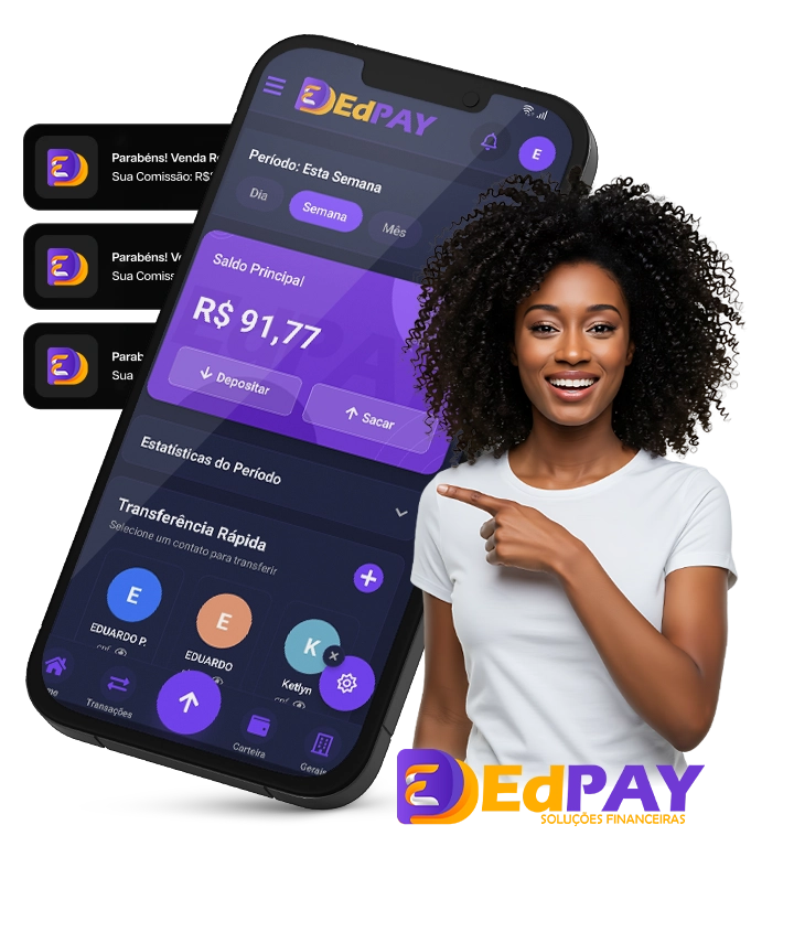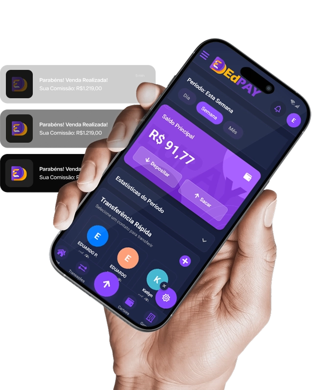 Com o EdPay minhas vendas dispararam! O checkout é super rápido e os clientes adoram as opções de pagamento. Recebo no PIX na hora e posso reinvestir imediatamente nas campanhas.